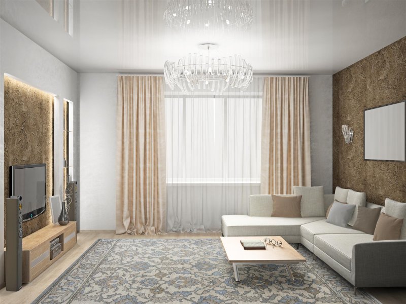 Для просторных гостиных, спален, детских с панорамными окнами на южную сторону, подойдут матовые полотна в несколько уровней, насыщенных, холодных цветов. Тесная комнатка с единственным окошком, выходящим на север, оформляется светлым, теплым, глянцевым полотном в один уровень.