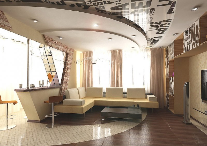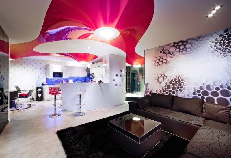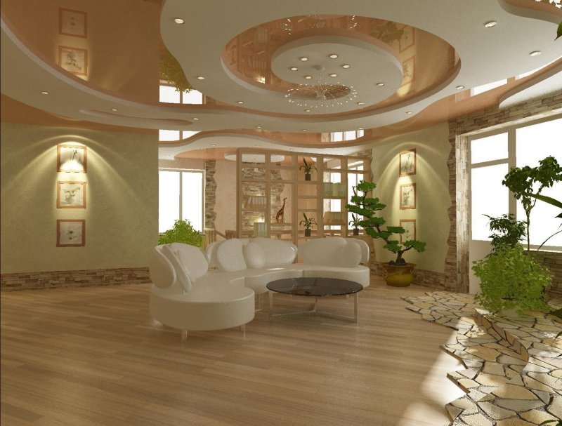 Натяжные, подвесные конструкции уместны практически в любом интерьере – их разнообразие позволяет подобрать идеальный вариант как к историческим либо этническим стилистикам, так и к самым современным.