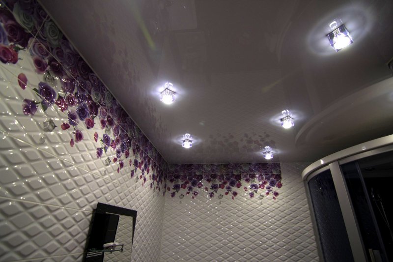 модерн – зачастую имеют несколько уровней, плавных изгибов, чаще всего матовые, цветочно-белые, коричнево-бежевые, иногда используется фотопечать, имитирующая витражи, мозаику, геометрический орнамент;