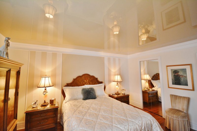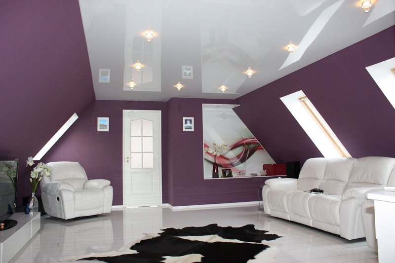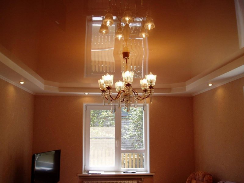 Блестящий, легко отражает лучи света, дает множество бликов, расширяет тесное пространство, делает его выше. Такое полотно, особенно белое, бежевое, наполняет помещение светом, но если его здесь в избытке, то глаза будут сильно уставать. В неотапливаемых помещениях загородного дома монтировать его не следует – за зиму покрытие придет в негодность.