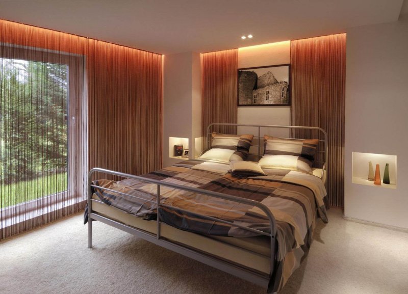 светодиодная лента – помогает изобразить «узоры из света», наружный слой с перфорацией делает помещение будто бы глубже;