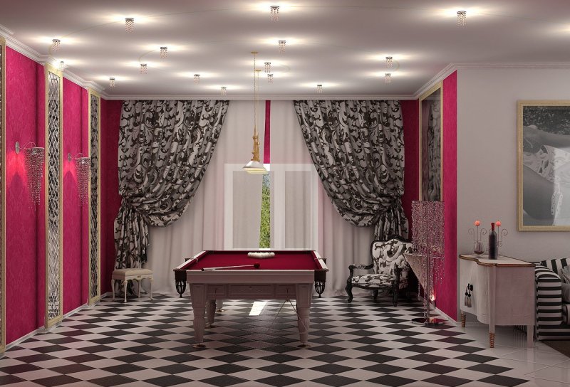 хай-тек – ровный, симметричный, чаще глянцевый, очень блестящий, без изображений, белого, черного, темно-синего, красного цвета, имеет множество источников света;