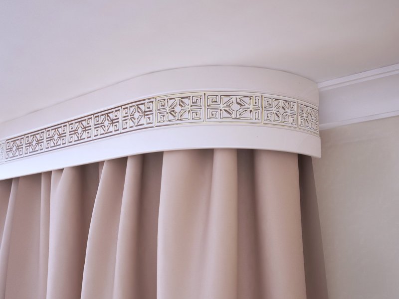 Для плотных гардин с большим весом, иногда декорируется пластиком, деревом.