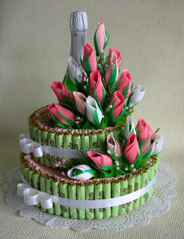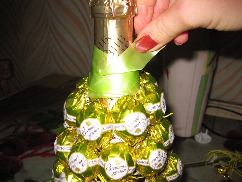 Оформление бутылки конфетами
