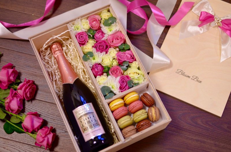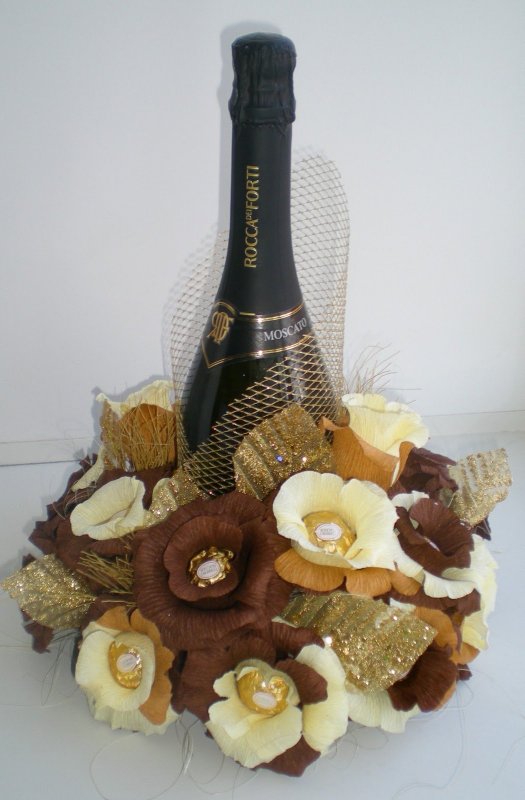 Составление композиций из живых цветов и бутылки вина/шампанского