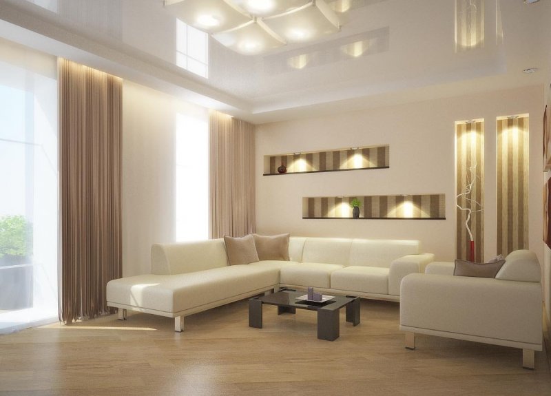 Согласно старым нормативам, которые действовали до 2010 года, высота потолка должна составлять не менее 2,5 метров. Именно это значение считается наиболее привычным и комфортным для человека. После внесения изменений в СНиП, нормы для высоты потолков опустили, предоставив строителям выбирать ее самостоятельно. В квартирах все же придерживаются определенных значений относительно разных комнат. Для жилых помещений и кухни норма остается все такой же в 2,5 м, а вот для коридоров, прихожих, холлов цифра уже чуть ниже — 2,1 м. Не соблюдаются эти правила в некоторых коммунальных квартирах, общежитиях и старых зданиях (постройки досоветских времен). В частных домах, как говорится, хозяин барин, и владельцы вправе сами выбрать для себя оптимальную высоту. Хотя в маленьких комнатах, высокие потолки под 3 метра будут смотреться неуместно, создавая эффект «колодца». В больших, просторных помещениях, наоборот, нависающий верх приземлит гостиную или спальню до состояния «пещеры». Дизайн низких потолков включает в себя подбор цветовой гаммы, освещения и правильное декорирование. Рассмотрим ряд хитростей и приемов, которые помогут исправить строительные огрехи и сделать комнату уютной, а ее интерьер сбалансированным. Содержание Что исключить в комнате с низким потолком Приемы для визуального увеличения потолка Роль зеркал в увеличении высоты и пространства Правильное освещение Какую мебель выбрать для комнаты с низкими потолками Архитектурные приемы Размещение элементов декора и аксессуаров Заключение Что исключить в комнате с низким потолком Геометрия комнаты должна быть четко выверенной. Потолки, нависающие слишком низко, негативно действуют на психологический комфорт человека. У тех, кто страдает клаустрофобией, это даже может спровоцировать приступ. Если помещение низкое, то создается впечатление, что потолочная плита сейчас рухнет и раздавит всех, кто под ней находится. Чтобы не усугубить ситуацию и визуально не приземлить потолки еще больше, некоторых интерьерных элементов следует избегать. Нельзя украшать комнату следующими деталями: Потолочная лепнина. Любимое украшение классических интерьеров добавит объем там, где он однозначно будет лишним. Яркий, пестрый декор на стенах. Массивная мебель. Вместо объемного классического гардероба из темного дерева, для украшения комнаты лучше выбрать небольшой шкафчик. Не используйте габаритные кровати, диваны и кресла. Такая мебель органично будет смотреться только в комнатах, с классическими параметрами. Темная цветовая гамма в отделке потолка. Остановитесь на традиционном белом варианте. Массивная люстра с каскадом лампочек. Это, опять же, излюбленный декор для классического стиля, от которого придется отказаться в пользу лаконичного плафона. Для низких потолков рекомендуют использовать несколько источников света, которые поделят поверхность между собой на секции или зоны. Гардины с ламбрекенами сильно «приземлят» обстановку. Причем они не только сделают потолок еще ниже, но и уменьшат комнату. Визуально «возвысят» помещение легкие, воздушные шторы светлых оттенков. Если на текстиле будут присутствовать вертикальные полоски, то они еще больше «удлинят» комнату. Можно даже отказаться от штор вовсе и использовать только тюль-паутинку. Массивная или высокая мебель. Она буде