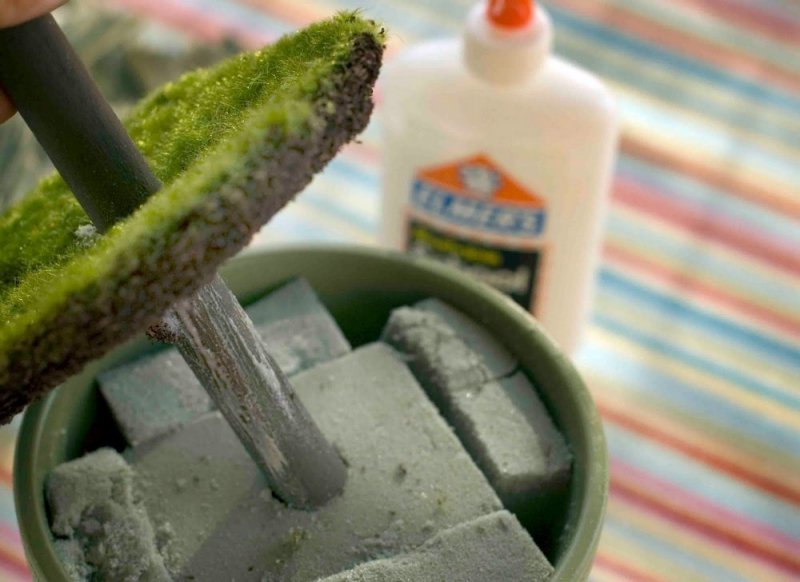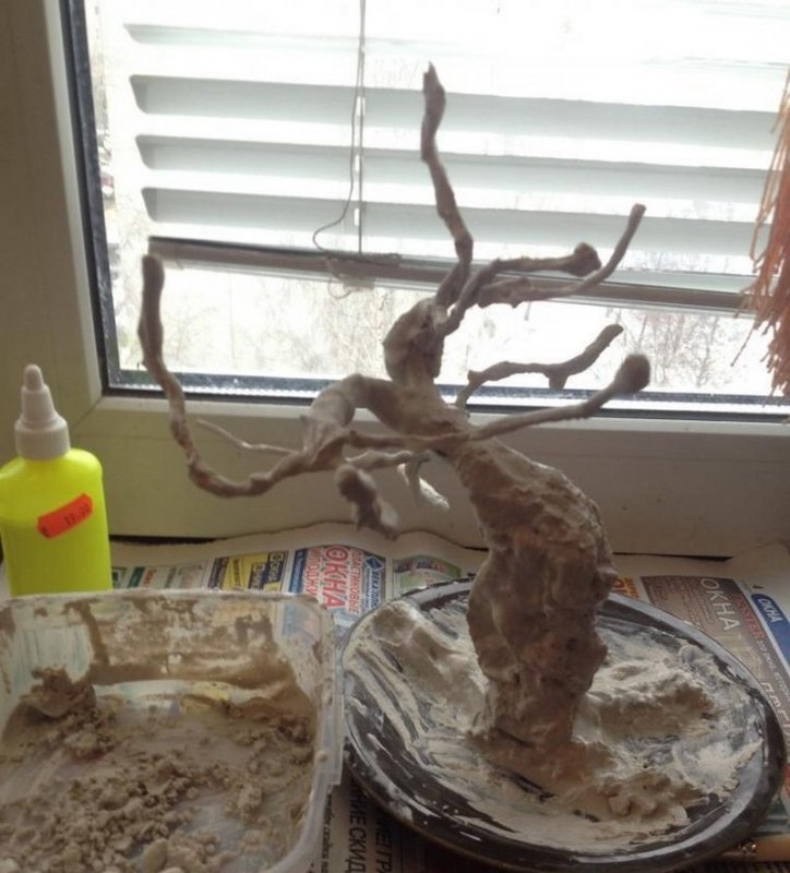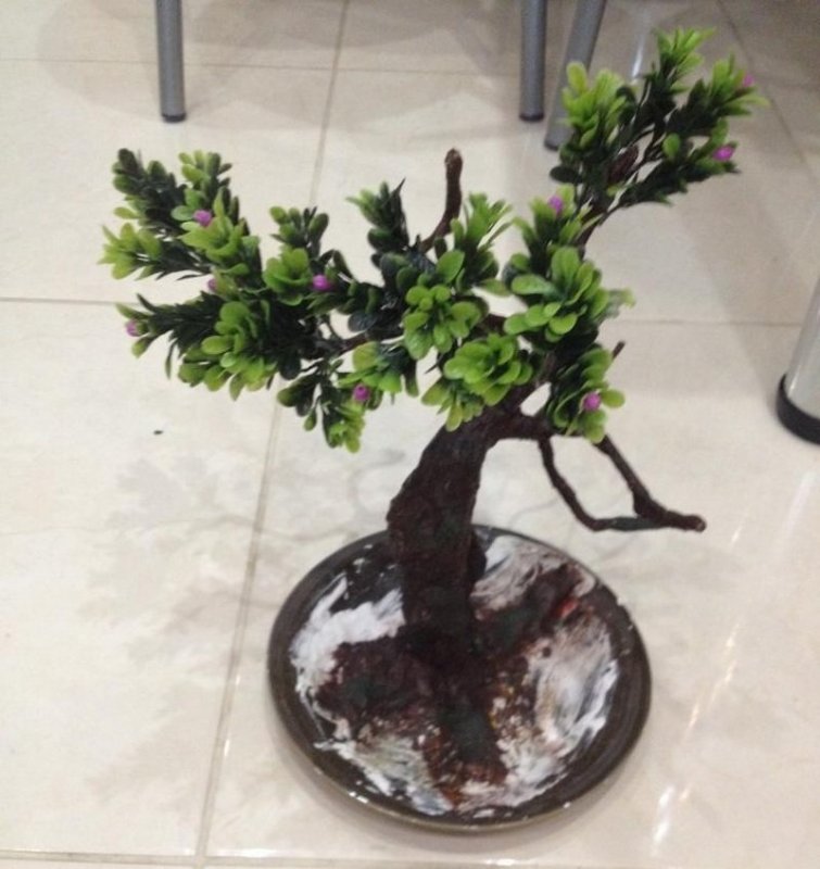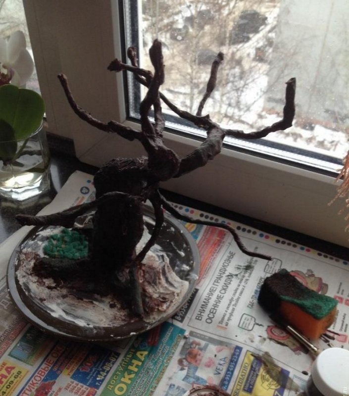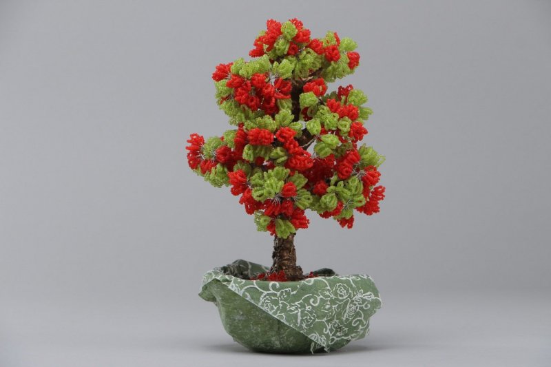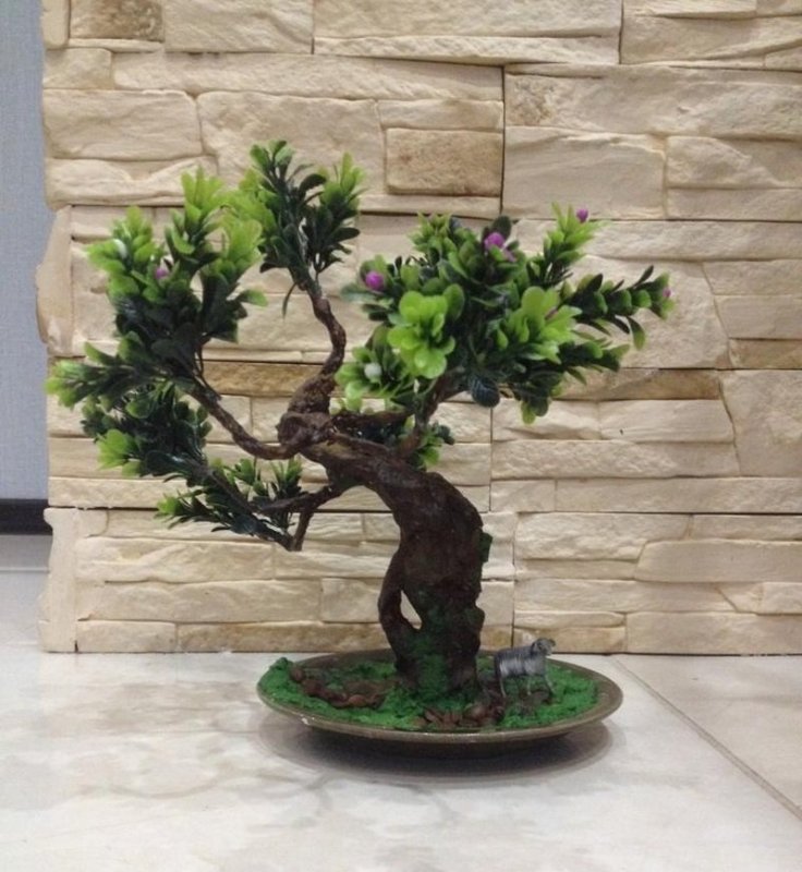 После высыхания можно украсить бонсай зелеными декоративными элементами.