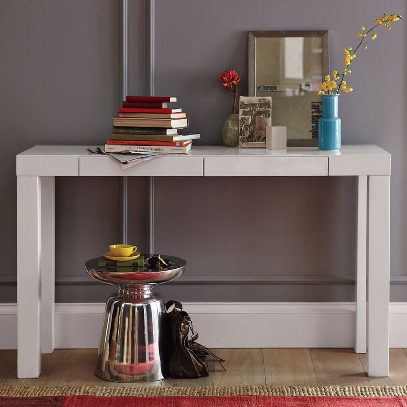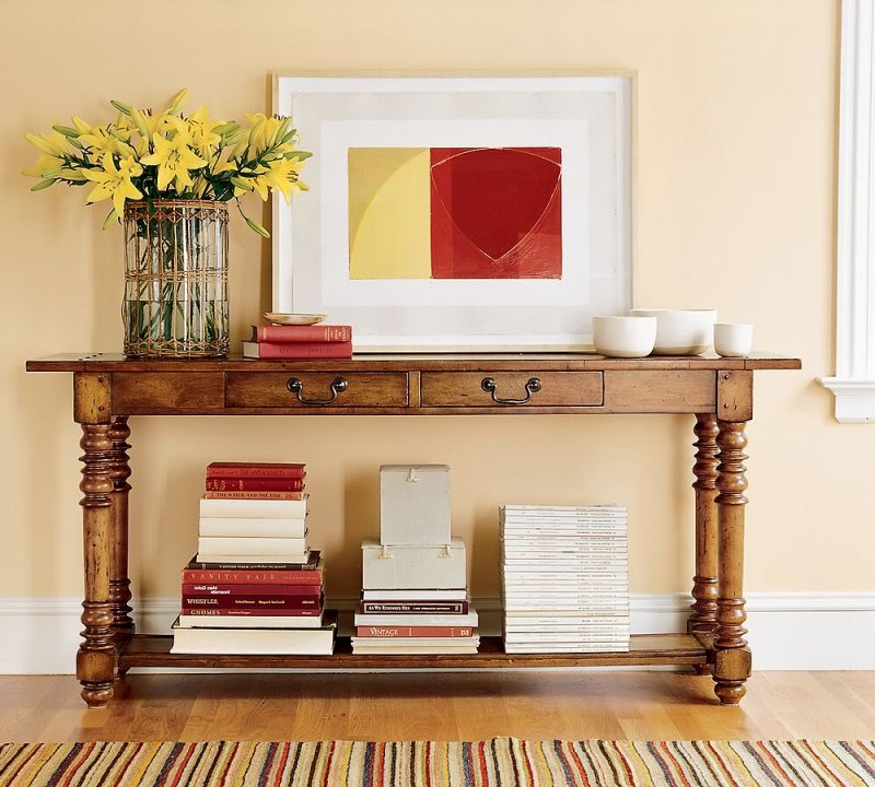 В зависимости от назначения консоль выглядит как узкий длинный стол или миниатюрная полочка. Средние ее параметры: