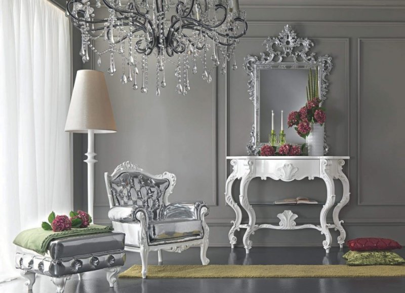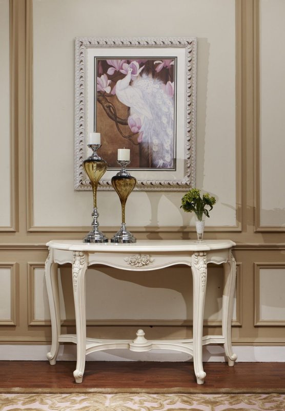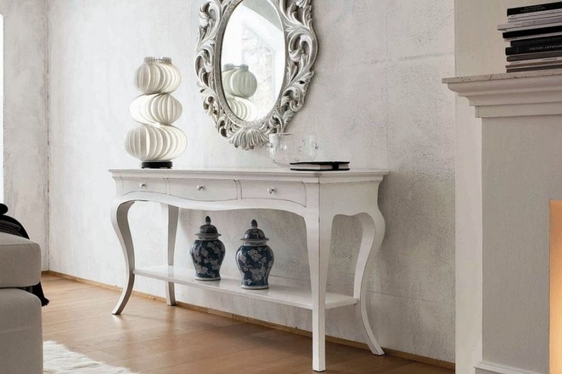 Слово консоль в переводе с французского означает «опора», «кронштейн». Так называют узкий столик – отдельно стоящий или прикрепляемый к стене. Идея произошла из архитектуры – сначала конструкция была пристенной, полукруглой, на нее опирались карнизы, балконы, полки, статуи, вазы, прочие выступающие детали, а форма ее ножек – изогнутой, с завитками.