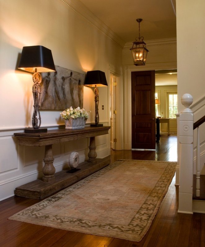 В прихожей на такой подставке размещают осветительный прибор, в виде небольшого торшера или двух.