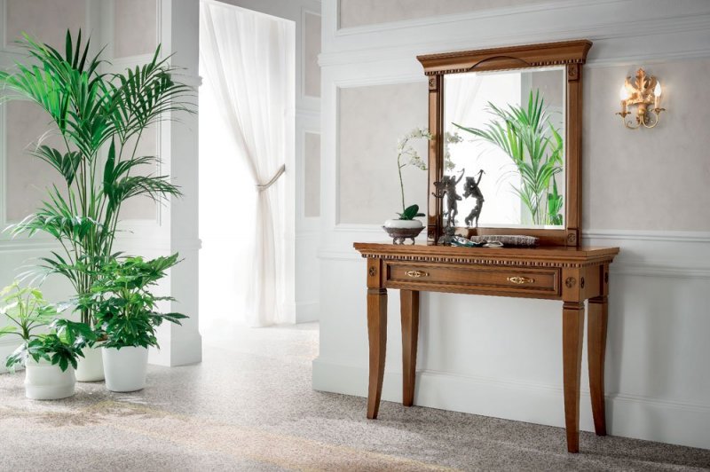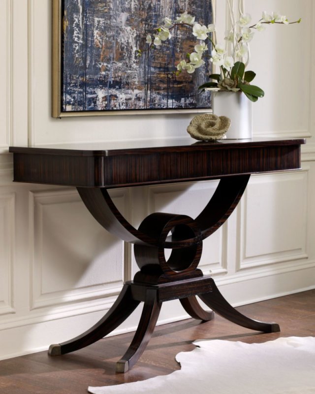 Консоль – элегантный, живописный, компактный предмет интерьера, способный расположиться практически в любой комнате. С ней дизайн пространства становится утонченным, изящным, полностью продуманным. Консоль в интерьере используется как в составе гарнитура из множества элементов, так и самостоятельно. Ее подбирают под общее оформление помещения, обычно в качестве подставки под телевизор, косметические средства, различный декор.
