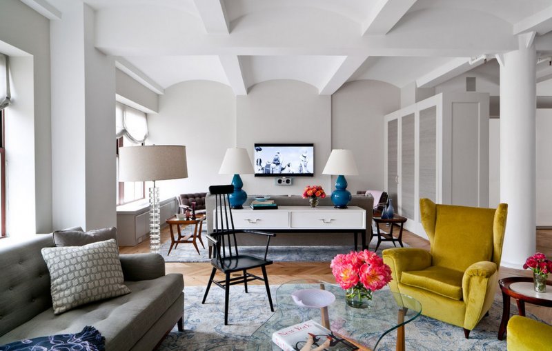 В простенке между двумя оконными либо дверными проемами устанавливается предмет интерьера соответствующей длины. Иногда подставка служит придиванным столиком, своеобразным домашним баром, располагаемым рядом с подлокотником или сзади, в том числе между диваном и стеной.