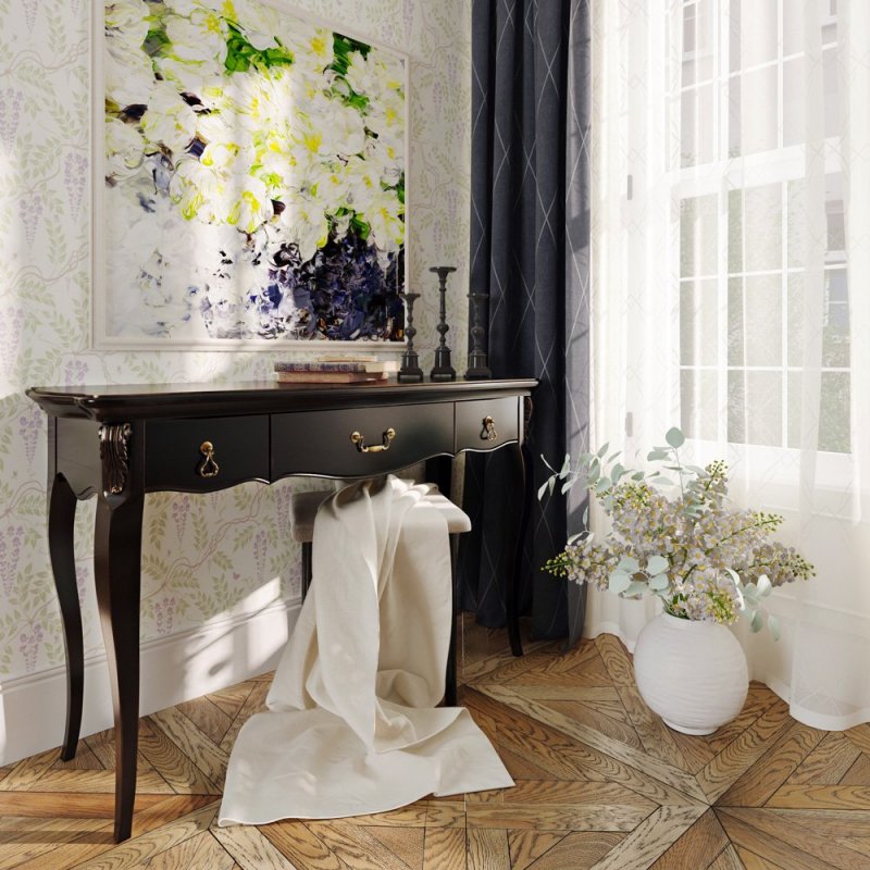 Консоль располагают в любом помещении квартиры, частного дома – кухне, прихожей, спальне, детской, гостиной, гардеробной, кабинете, ванной. Она может быть строго функциональной: