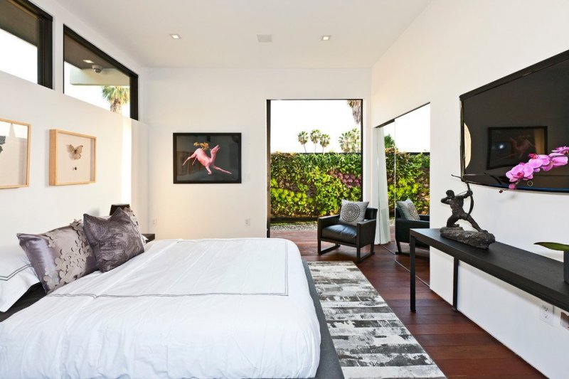 Когда телевизор висит на стене, на подставке под ним размещают игровую приставку, акустическую систему, вай-фай роутер.