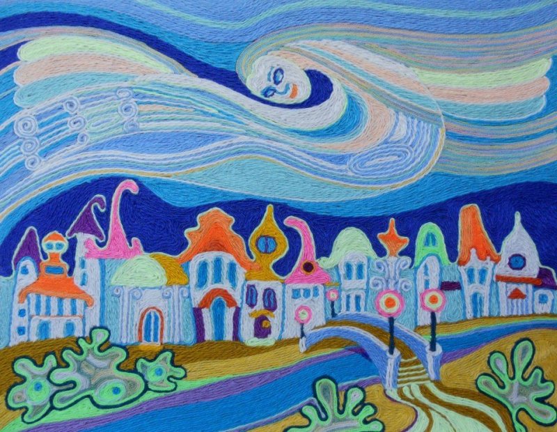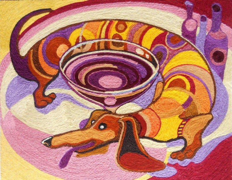 Рисование нитками — вид рукоделия, который включает в себя множество техник. Картины можно вязать и приклеивать к холсту, вышивать, создавать из кусочков шерсти, которую просто накладывают на полотно, а затем плотно придавливают стеклом. Сравнительно недавно появилась еще одна необычная техника, которая пока что не получила «официального» названия. Нить обмакивают в акварельной краске, а затем ее аккуратно прикладывают к чистому листу бумаги. Располагать нужно замысловато с изгибами и петлями. После этого будущую картину накрывают вторым листом бумаги, придавливают чем-то тяжелым. Теперь нужно потянуть за кончики и резко выдернуть нитку из двухслойной конструкции. Помимо основного контура, она оставит размытые следы на бумаге. В подобной технике рекомендуют рисовать цветы или абстракции, то есть нечеткие образы. Такой декор будет оригинально смотреться в стилях хай тек, минимализм, лофт.