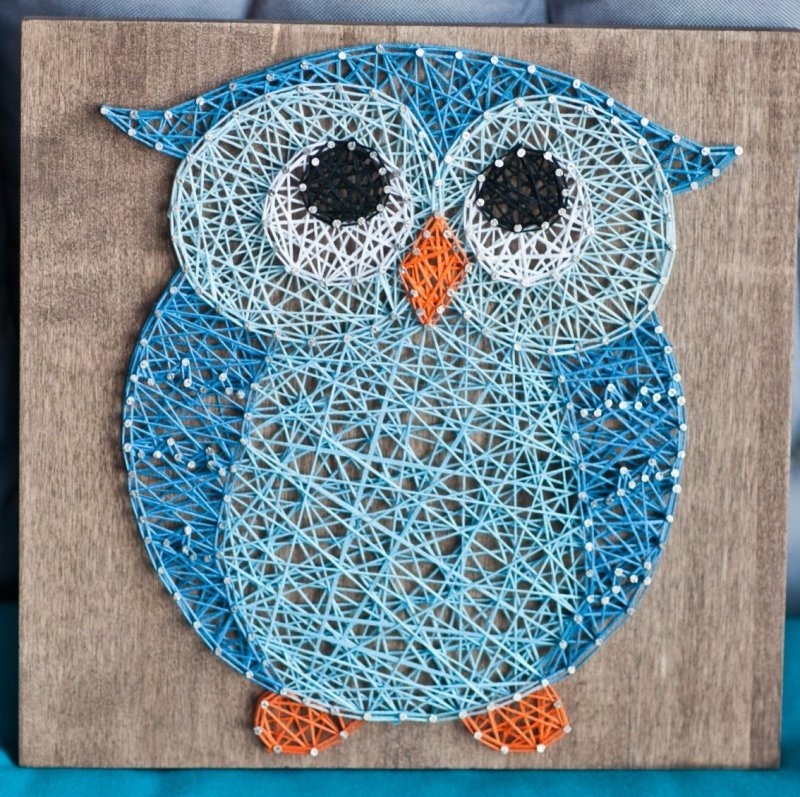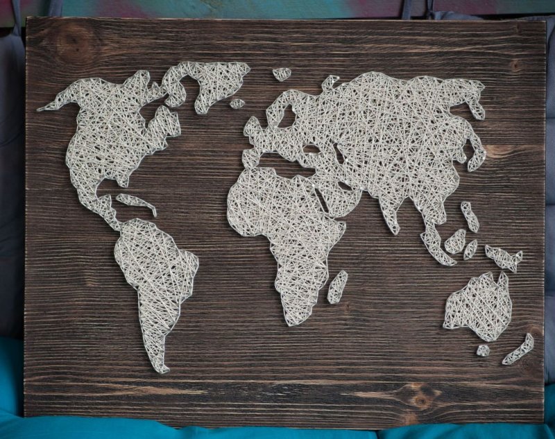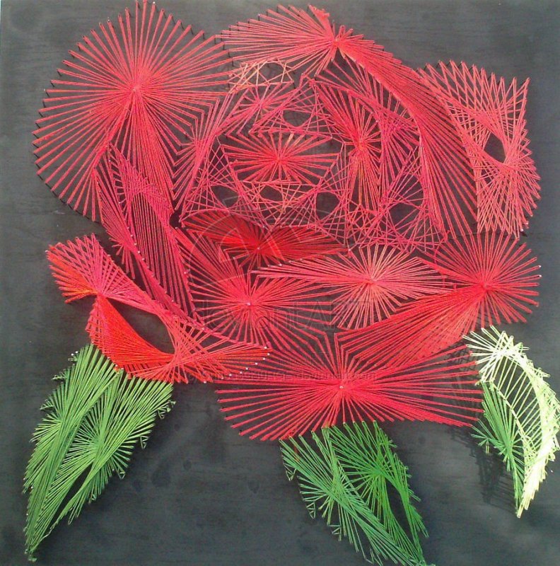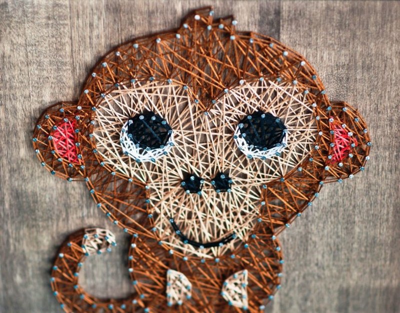 Панно из гвоздей и ниток без шаблона сможет изготовить только человек, обладающий определенным талантом художника, который умеет тонко передавать оттенки и полутона. Если желание велико, а мастерства не хватает, то придется подобрать простенькие картинки, которые будут образцами. В качестве основы выступает деревянная дощечка или лист пенопласта. При желании ее обтягивают кожей или однотонной тканью, чтобы придать фону нужный оттенок. В дощечку вбивают маленькие гвоздики на равном удалении друг от друга. Затем они используются в качестве колышков, за которые цепляют нити. Если рисунок простой и повторяет только контуры объекта, то гвоздики вбивают по кромке изображения. Если необходимо создать сложную картину с многочисленными мелкими деталями, то колышками усеивают все полотно. Чем больше витков нити будет сделано, тем более «заполненным» будет выглядеть элемент. Завязывать каждый раз узелки не нужно. Главное, чтобы нитка была натянута крепко, без провисания, а закрепляют только концы. Лучше использовать пряжу для вязания, она считается самой прочной. «Пустоты» внутри картины заполняются многочисленными пересечениями ниток, которые «встречаются» друг с другом под разными углами.