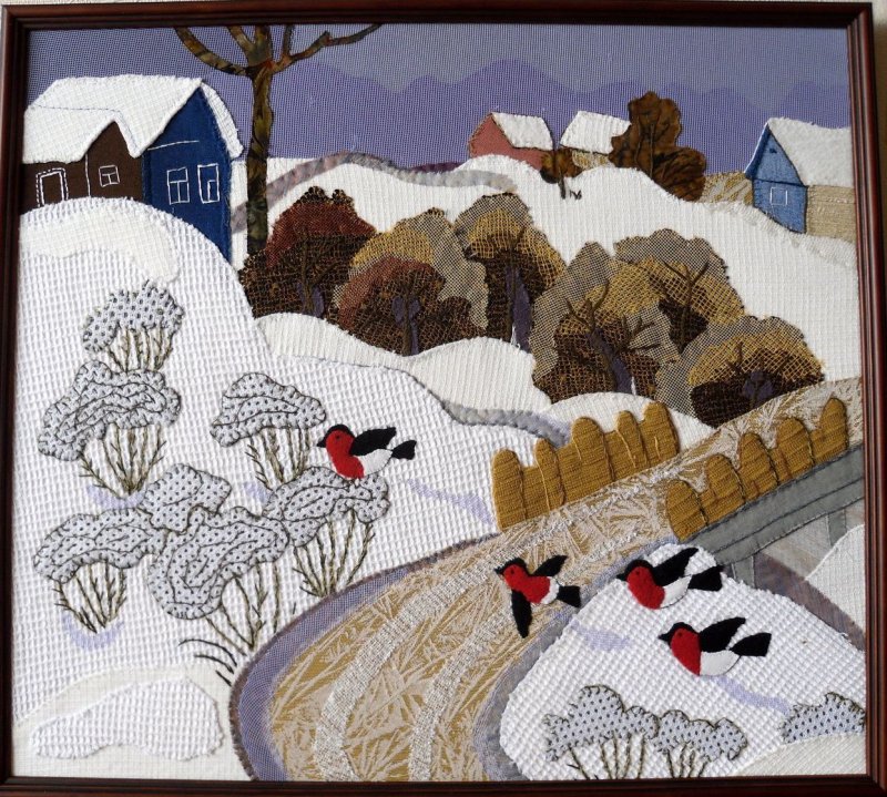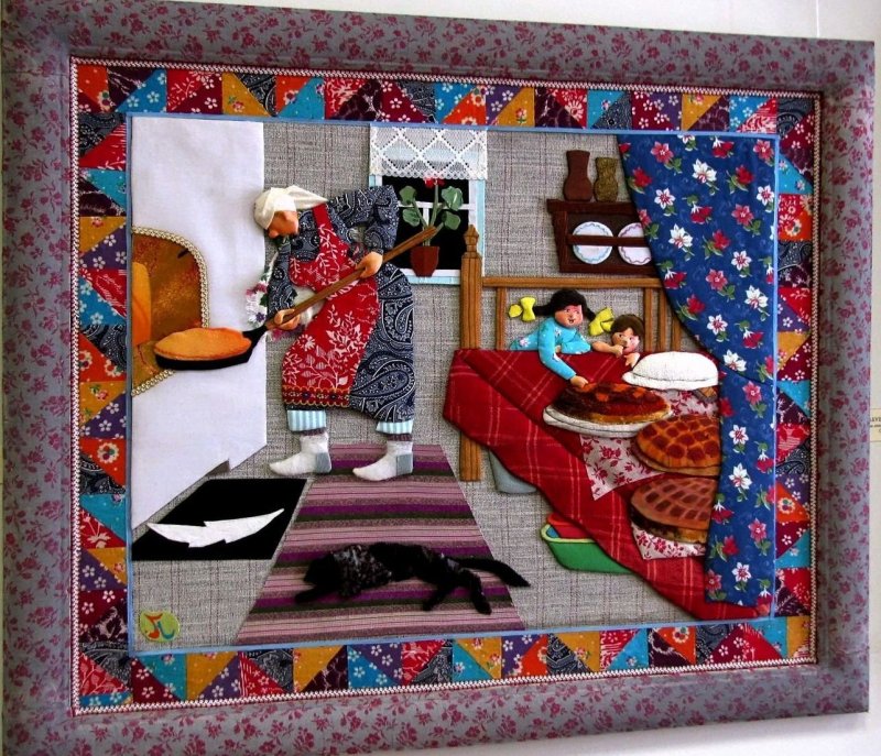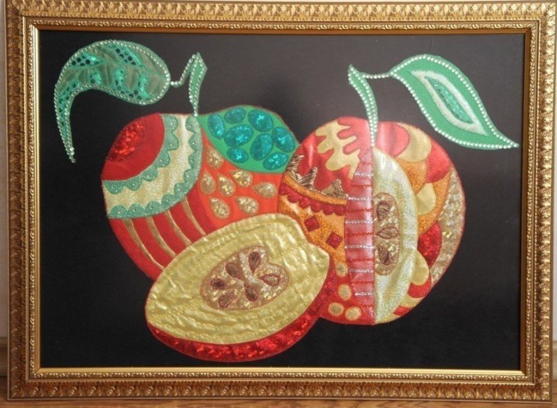 Картины из ткани создают плоскими и объемными. Для первого варианта (аппликации) используют мягкий фетр или разноцветные лоскутки бархата, велюра, полиэстера, шелка. На основу переносят рисунок, который впоследствии заполняют лоскутками. Закрепляют их с помощью клея. Для создания картин в стиле пэчворк основа не нужна. Полотно сшивают из лоскутков, а затем закрепляют непосредственно на стене. Такой уютный декор подойдет к стилю фьюжн, кантри, прованс. Гораздо сложнее и интереснее создавать объемные картины. Мастера работают в технике кинусайга, осиэ, мокрая ткань и сшивают фантастические цветы из шелковых лент. Для первого способа потребуется: