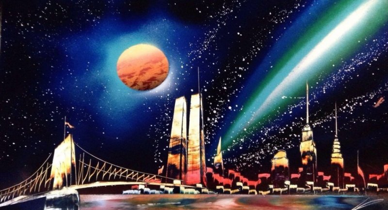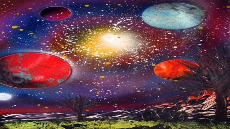 В среде дизайнеров этот способ называют spray paint art или техникой «быстрого рисования». Для работы используют краски в баллончиках, лист бумаги, трафареты (в основном подручные средства), скребки, острые металлические палочки. Изображение наносят в несколько слоев, попутно смешивая цвета с помощью инструментов. Самой популярной тематикой для spray paint art считается космос. Фантастические, слегка абстрактные пейзажи далеких планет легко создать путем смешивания красок, которые образуют необычные «завихрения» и переливы. Чтобы создать растительный рисунок, используют настоящие веточки, стебли с листьями и цветками. Они выступают в роли трафаретов. Сначала отдельные области закрашивают тем цветом, в который будут закрашены растения. Затем их прикладывают к холсту и сверху распыляют краску для фона.