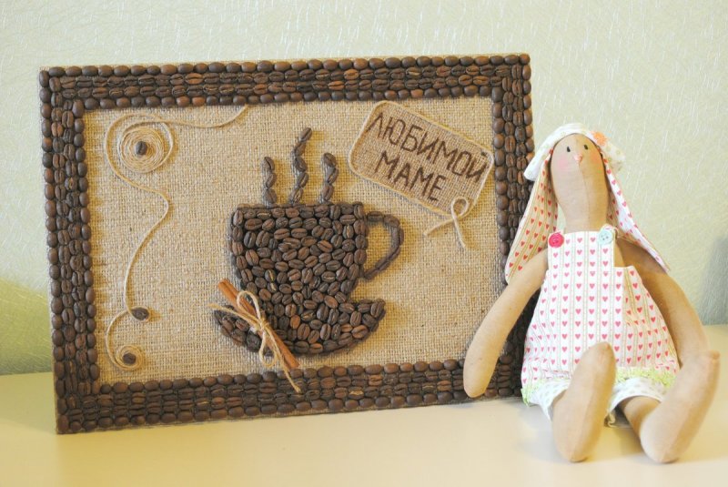 Дизайнерские картины изготавливают в технике квиллинг, из кофейных зернышек и круп, из букетиков высушенных цветов, муки, разноцветных стекол, шпагата, спичек, кусочков керамической плитки и даже мягких игрушек. Последний способ отличается оригинальностью. Плюшевого мишку присыпают мукой спереди, а затем прижимают игрушку к черному холсту. Мучная пыль осыпается, остается «слепок» медвежонка. Закрепляют изображение с помощью лака. Из яичной скорлупы можно изготовить картину в мозаичной технике: ее приклеивают к холсту, а затем раскрашивают. Этот материал великолепно имитирует фактуру кожи рептилий. Из сигарных бантов, ценители табачных изделий, создают чудесные сюрреалистичные полотна. Картины получаются яркими и контрастными. Сигарные банты к основе приклеивают.