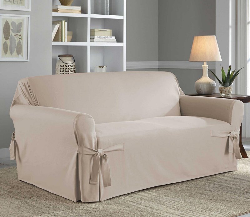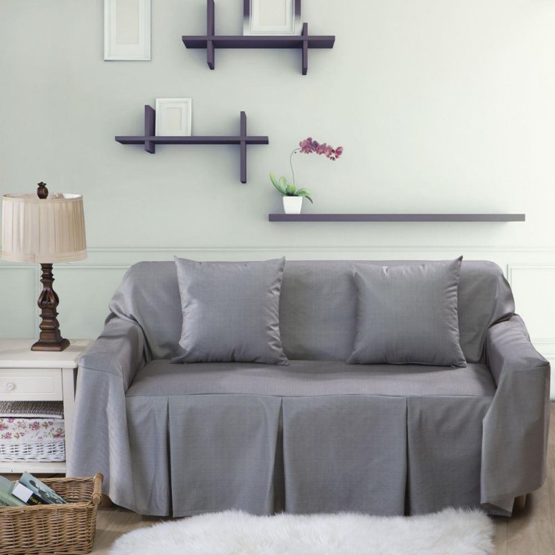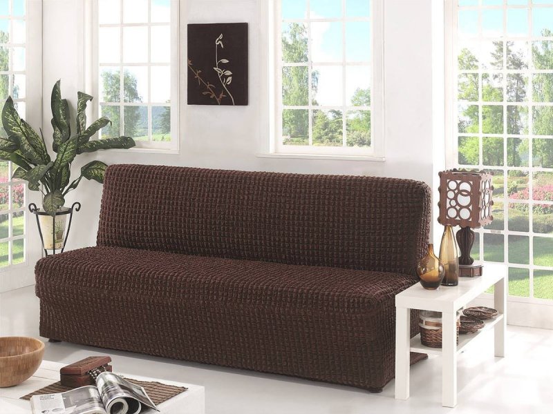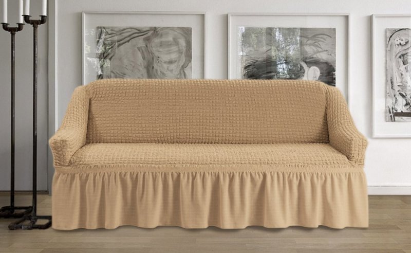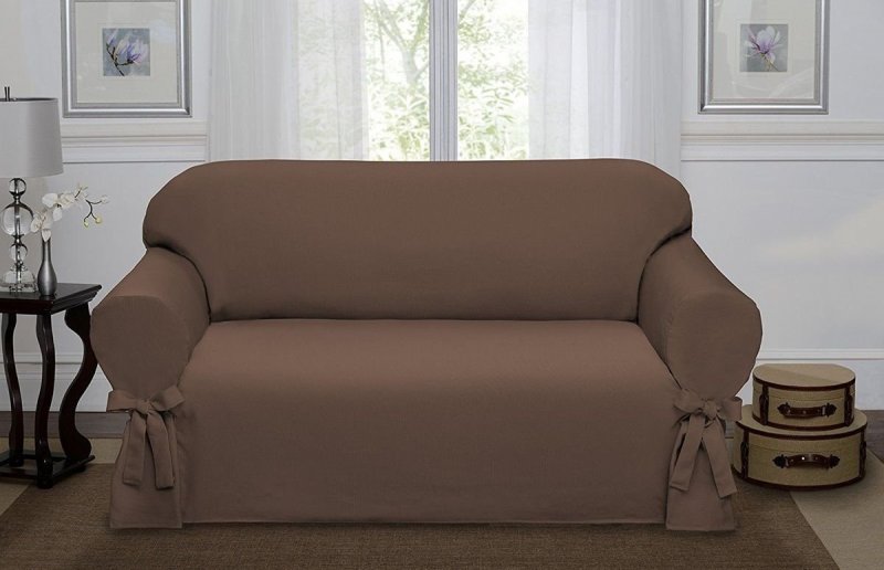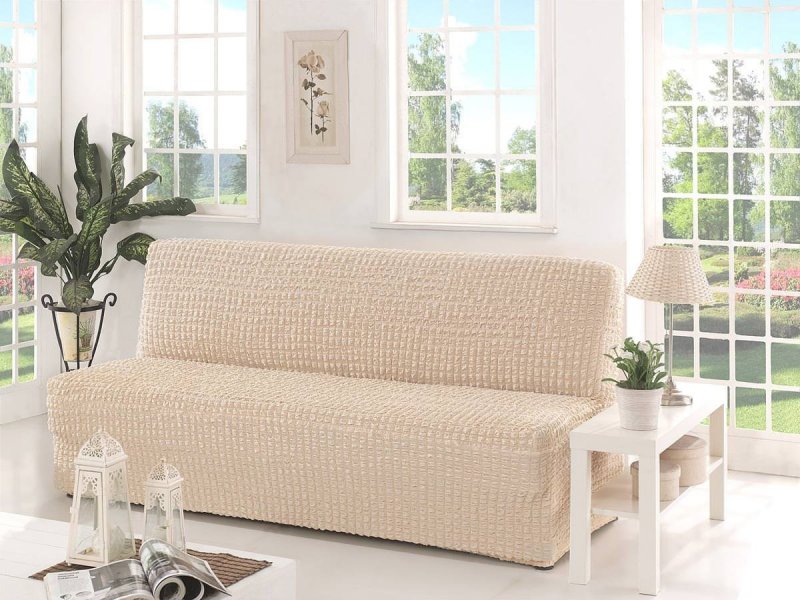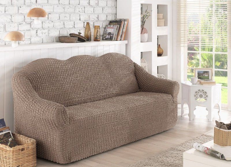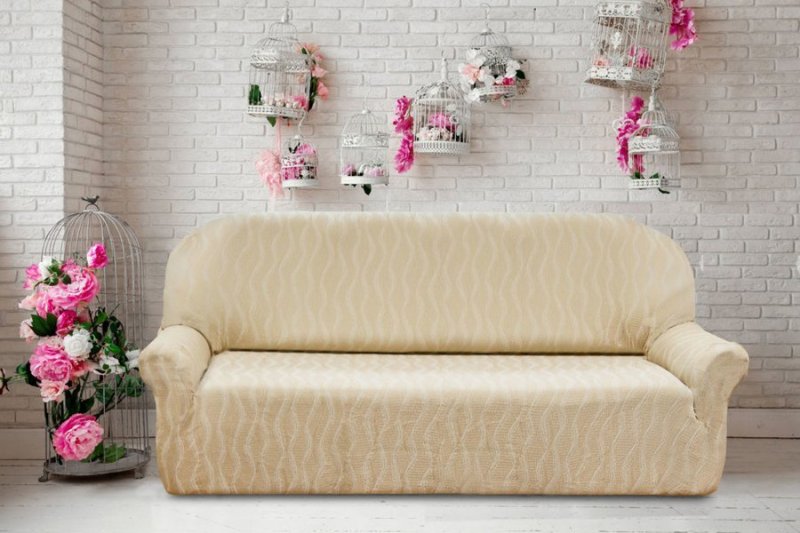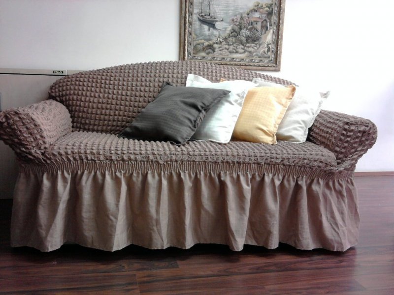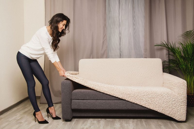 Чехол раскладывается на поверхности дивана.