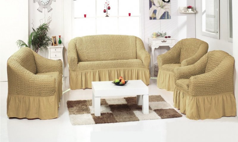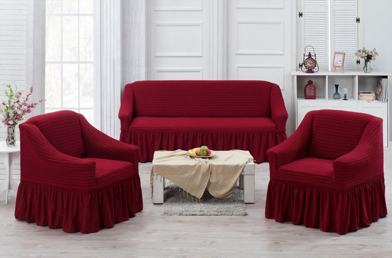 Основным отличием производимых еврочехлов для кресел является их стилистическая подача. Такие модели могут внизу дополняться аккуратной оборкой или же иметь внизу ровный бортик, оснащенный резинкой. Для диванов производится большее количество еврочехлов следующих видов:
