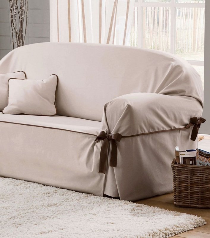 Инструкция по надеванию чехлов европейского типа довольно проста и не требует особых навыков. Если диван стоит вплотную к стенке, то предварительно его нужно отодвинуть для надевания накидки. Сама работа проводится по такой схеме: