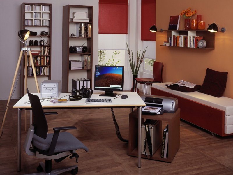 в гостиной – если в общей комнате никто не ночует, здесь можно трудиться хоть до утра. Правда, в дневное и вечернее время ваши домашние могут серьезно мешать разговорами, просмотрами телешоу и футбольных матчей;