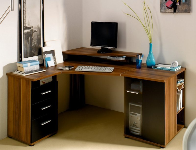 Главный «герой» любого офиса – стол. Разнообразие предлагаемых конфигураций позволяет подобрать идеальное решение для каждого конкретного случая. Компьютерные столы имеют ряд особенностей, которые характерны лишь для них. Они, как правило, снабжены подставками для системного блока и монитора, выдвижной полочкой для клавиатуры, отверстием для проведения кабелей. Форма рабочего стола может быть абсолютно любой, но наиболее часто встречаются: