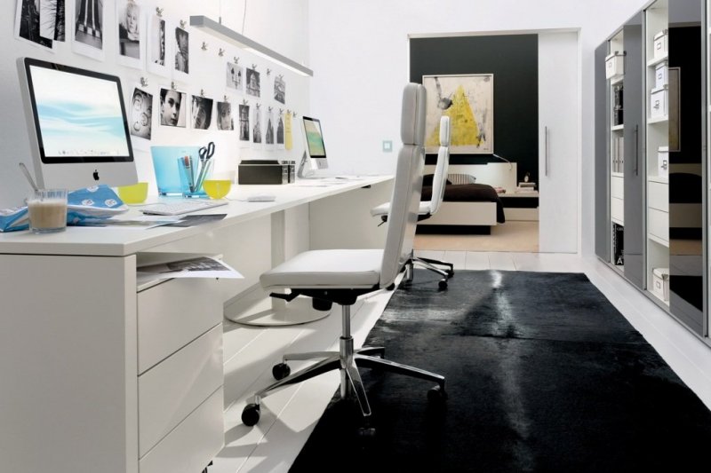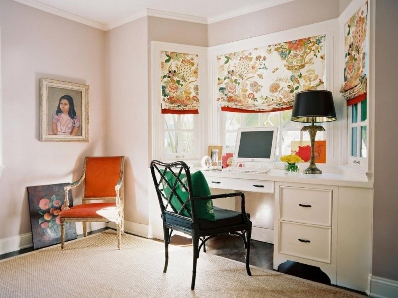 в спальне – главное преимущество – здесь можно уединиться и домочадцы не будут вам докучать. Закрывая дверь, вы блокируете проникновение криков, шумов, запахов. Но если вы делите спальню с супругом или другим родственником, вряд ли вы сможете беспрепятственно работать во время его сна;