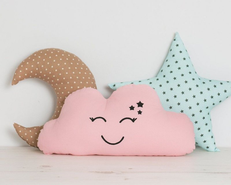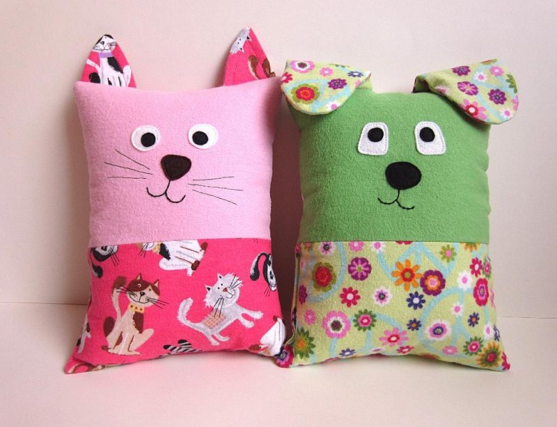 Отдельно стоит отметить фигурные подушечки, которые обычно относят к группе детских. Им придают форму различных зверушек, героев мультфильма, букв алфавита. Их украшают рисунками и надписями. К примеру, для маленьких мальчиков шьют подушки в форме машин или роботов, а девочкам подбирают более нежные варианты: щенков, жирафов, кошек, собак, мягких куколок. На таких игрушках можно спать, но большую часть времени они украшают комнату и используются для игр. В зависимости от технологии шитья выделяют еще несколько видов: