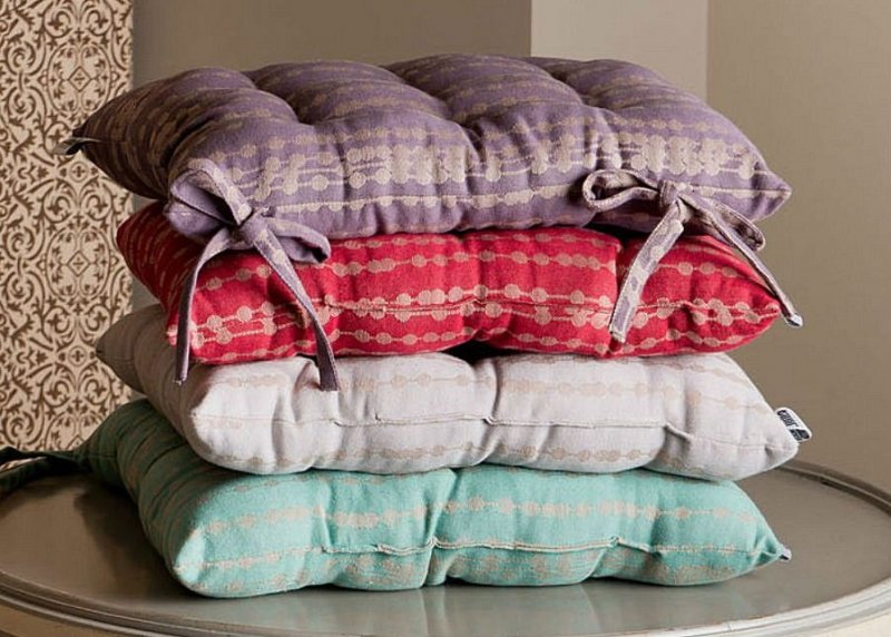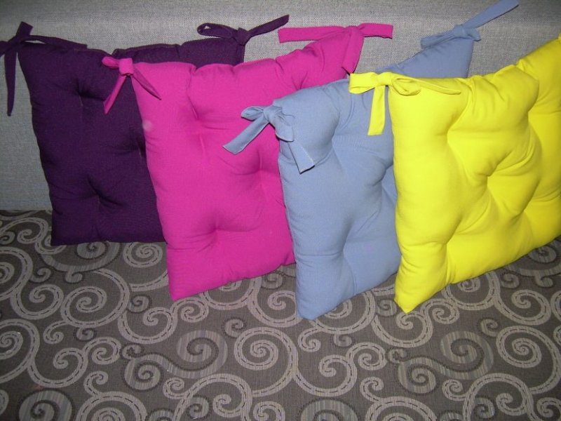 Подушки «сидушки» кладут на твердые стулья и табуреты. Они отличаются от обычных моделей толщиной. «Сидушки» больше напоминают сплюснутые «блины». Большой объем им придавать не нужно. Наполняют «сидушки» поролоном или синтепоном. Чехлы шьют из прочных, натуральных тканей, который по сроку службы не уступают мебельной обивке. Нельзя забывать, что такая подушка будет изнашиваться в несколько раз быстрее, чем обычная. Никакие лишние украшения ей тоже не требуются, ведь на пуговицах и затейливых узорах из бисера будет неудобно сидеть. Обычно «сидушки» одевают в стеганые чехлы, которые за счет внутренней прослойки добавляют им мягкости.