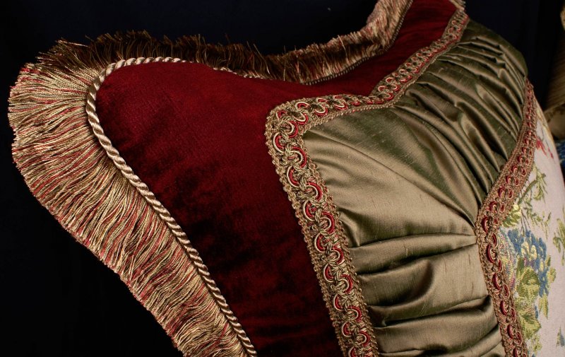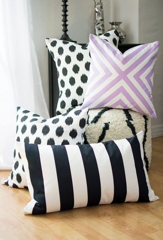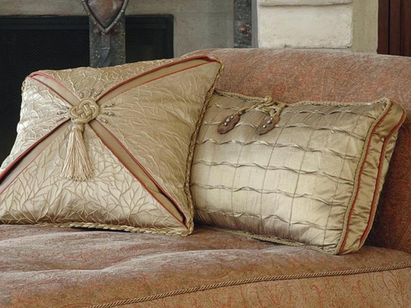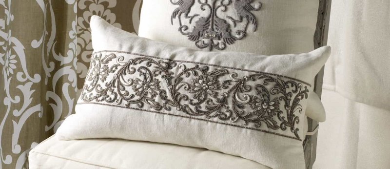 Когда работы по пошиву самой подушки завершены, можно приступать к самой творческой части, подбору оформления наволочки. Для начала нужно подобрать дизайн к стилистическому решению комнаты, которую будет украшать этот предмет декора. Для классики лучше использовать роскошные, дорогие ткани с изящной вышивкой золотыми или серебряными нитями. Для современных стилей подойдут модели простого кроя из лаконичных материалов, ведь здесь акцент нужно делать на форме и цвете. Для восточных интерьеров создают пестрые подушки с многочисленной бахромой и кисточками. Комнату для ребенка украсят чехлы с оборками, рюшами, аппликациями, кружевом, простой вышивкой. Для современных девичьих спален подойдут подушки, декорированные пайетками, булавками, бантами и даже мехом. Для деревенских интерьеров используют вязаные чехлы, украшенные пуговицами, цветами из лент.