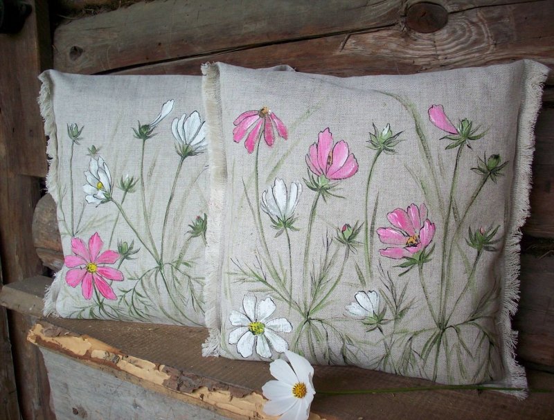 Печать на ткани можно заказать в специализированных салонах, которые с помощью специальной аппаратуры в точности перенесут изображение на материал. Однако, оформить чехол для подушки можно и самостоятельно. Перенос изображения можно попробовать осуществить с помощью горячего утюга с обычной фотографии, но результат получится тусклым и недолговечным. Намного проще работать с набором маркеров или красок в баллончиках и трафаретами. Рисунки, как правило, подбирают лаконичные, так как отобразить сложные переходы цветов сможет только художник-мастер. Ткань необходимо разложить на ровной горизонтальной поверхности. Для надежности ее лучше закрепить булавками или придавить по краям чем-то тяжелым. Зону, которая должна остаться нетронутой, изолируют с помощью малярного скотча или пищевой пленки. Теперь прикладывают трафарет и закрепляют его. Можно приступать к раскрашиванию изображения.