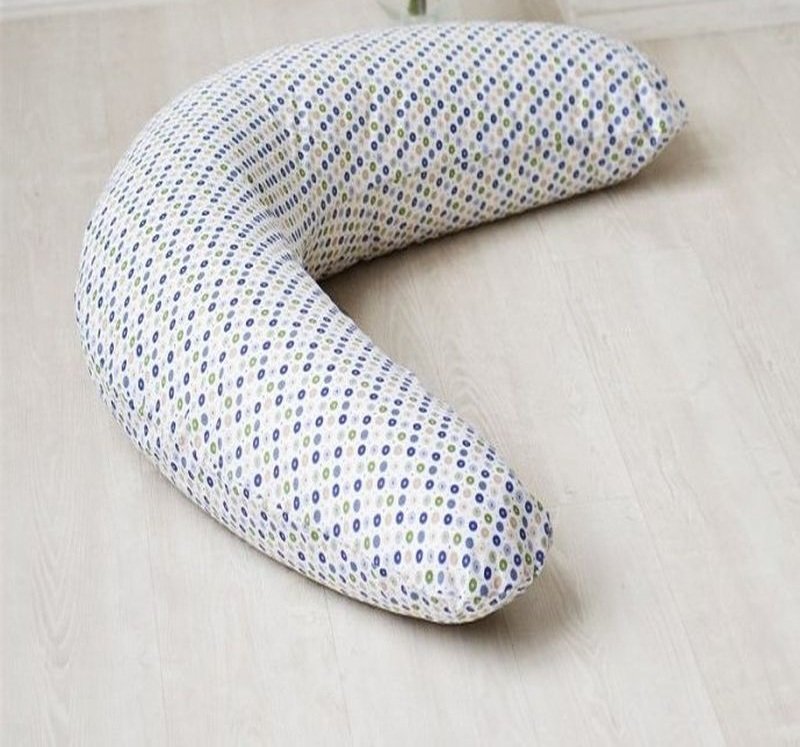 Подушки для беременных, как правило, имеют форму вытянутой подковы. На них удобно спать женщинам с уже большими животами, так как тело словно «обволакивает» мягкий наполнитель, и оно полностью расслабляется. При этом подушку можно разложить, как больше нравится. В обычном состоянии она представляет собой длинный валик. Для изготовления такой детали потребуется много гипоаллергенного наполнителя и хороший отрез натуральной ткани, приятной к телу. Размеры подбираются индивидуально, исходя из особенностей тела женщины.