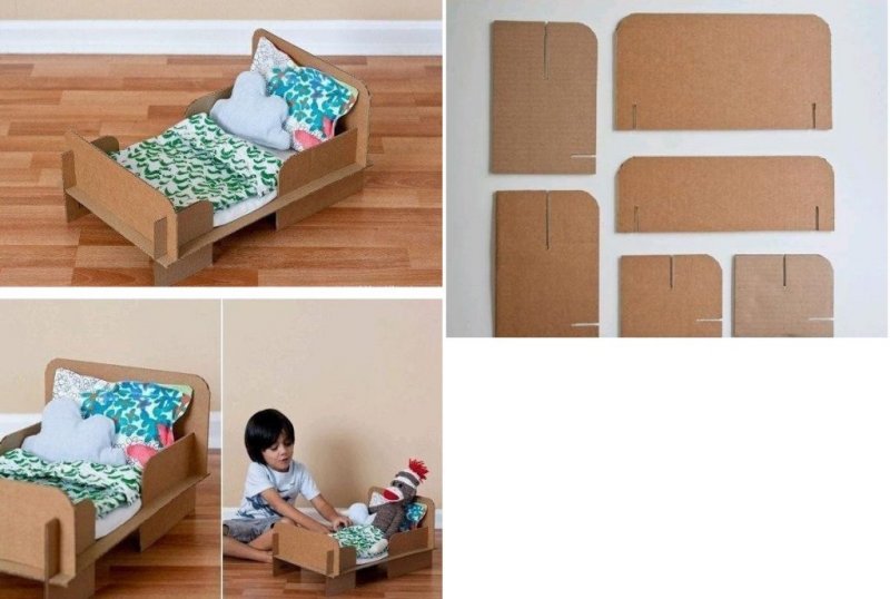 Каждый когда-то был ребенком, самостоятельно или с помощью взрослых предпринимал первые попытки построить миниатюрный город, обустроить кукольный интерьер помещения в своей игровой комнате. Одним детям покупались стандартные магазинные игрушки, другим родители изготавливали машинки, домики, мягкие игрушки и даже мебель для кукол своими руками, экономя бюджет семьи. Содержание Какие подручные средства, материалы могут пригодиться Мастер-классы по изготовлению кукольной мебели Мебель из коробок, коробочек Из фанеры Из дерева Из картона по шаблонам, схемам Из бумаги Из ткани Как сделать мебель из металлических банок от напитков Вязаная мебель Идеи изготовления мебели из прочих материалов Элементы декора кукольного домика О готовых конструкторах из фанеры Заключение Какие подручные средства, материалы могут пригодиться Для создания кукольной мебели, оформления интерьера игрушечного домика, будут полезны: спичечные коробочки – они станут выдвижными ящиками комодов, письменного и туалетного столиков, шкафов, комодов для белья; сигаретные пачки – подойдут для оборудования гардеробной Барби, хранения ее сапожек; обувные коробки – из них выйдут кровати, столы, шкафчики для больших кукол; коробки от детской каши, духов, другой косметики; цветные пластмассовые бутылки, стаканчики от йогурта; мягкие поролоновые губки, салфетки из вискозы; куски фанеры, ДВП, древесных спилов, досок; обрезки ткани, кожи, марли; пластиковые «яйца» из киндер-сюрпризов; остатки проволоки, цепочек, фольги; швейные, вязальные нитки, шнурки; металлические консервные банки; бумага, картон, обои, клей ПВА; скотч, цветная самоклеящаяся пленка; пенопласт, пластилин, полимерная глина; гуашь, акрил, лак для ногтей; бусины, пуговицы, светодиодные фонарики. При минимальных навыках резьбы по дереву, шитья вручную либо на машинке, вышивания, легко создать невероятные кукольные поделки. Мастер-классы по изготовлению кукольной мебели При создании самодельного интерьера кукольного домика, следует начать с обустройства основных комнат – обычно это кухня, спальня, гардеробная. Наиболее распространенные предметы меблировки: кровать; стулья и стол; кресло; тумбочка; комод; шкаф, в том числе угловой; диван и кухонный диванчик; посудный шкафчик; телевизор; холодильник; столик для кухни. Мебель из коробок, коробочек Мебельный гарнитур из спичечных коробок – наименее трудозатратный способ создания внутреннего дизайна кукольного домика. Чтобы сделать мини-комод или туалетный столик, понадобится: шесть-десять коробков от спичек; клей ПВА или любой другой; цветная бумага или декупажные салфетки; плотный картон; ножницы. Как это делается: спичечные коробочки склеиваются друг с другом так, чтобы все ящики свободно выдвигались; сверху приклеивается картонная столешница; все видимые поверхности оклеиваются бумагой, салфетками, самоклеящейся пленкой, окрашиваются гуашью; ножками столика или комода станут четыре деревянные бусины в форме конусов, ручками ящичков – круглые бусинки или мелкие пуговки. Примерно таким же образом делается туалетный либо письменный столик с двумя тумбами. Из фанеры Для изготовления такой вещи, как игрушечный журнальный или обеденный столик, понадобится: кусок фанеры; электролобзик; клей ПВА; акриловая краска; карандаш; линейка; циркуль; бумаг