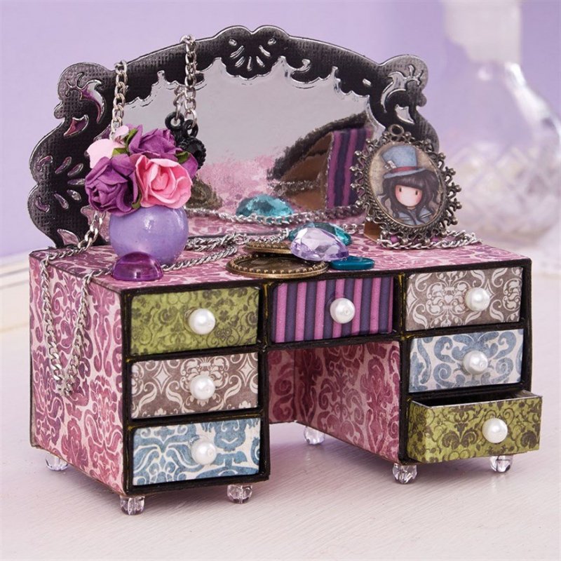 Мебельный гарнитур из спичечных коробок – наименее трудозатратный способ создания внутреннего дизайна кукольного домика. Чтобы сделать мини-комод или туалетный столик, понадобится: