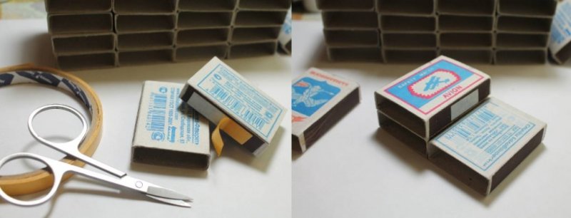 спичечные коробочки склеиваются друг с другом так, чтобы все ящики свободно выдвигались;