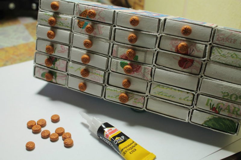 спичечные коробочки – они станут выдвижными ящиками комодов, письменного и туалетного столиков, шкафов, комодов для белья;