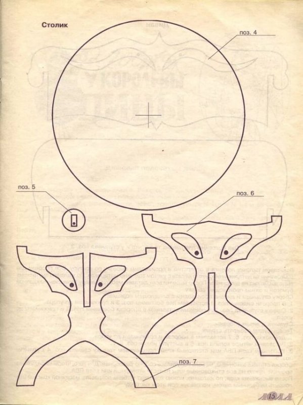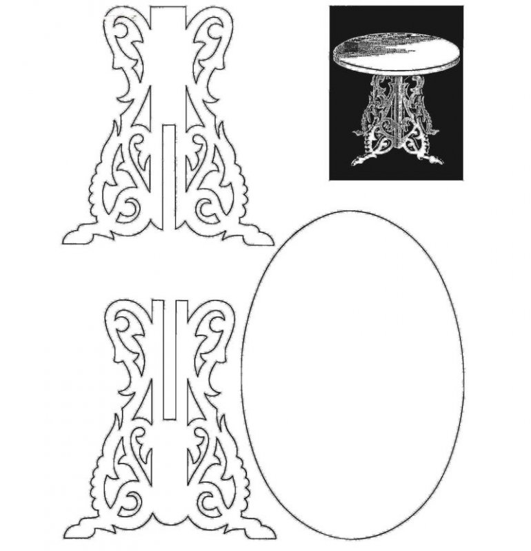 чертеж деталей столика изображается на бумаге, после переносится на фанерный лист;