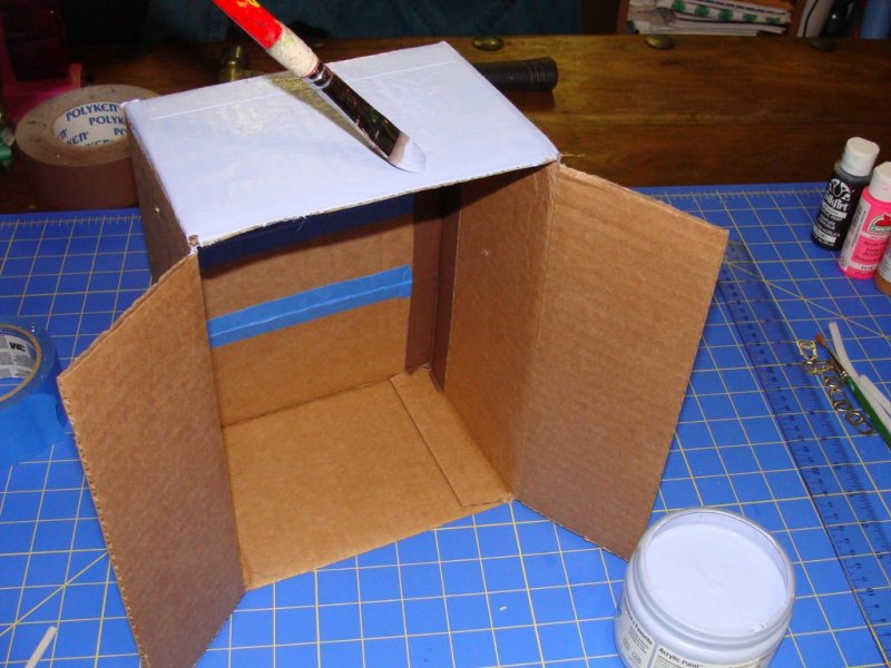 все видимые поверхности оклеиваются бумагой, салфетками, самоклеящейся пленкой, окрашиваются гуашью;