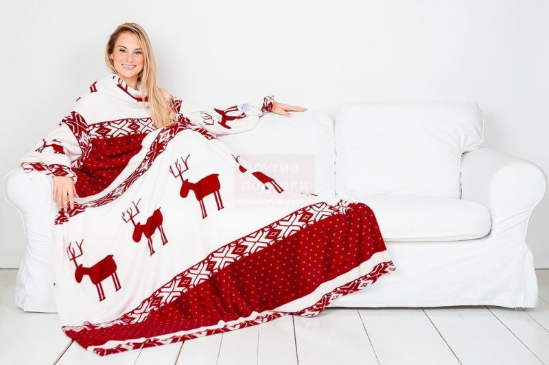 Изготавливаемые своими руками новогодние подарки могут быть не только практичными, но и дарить своему обладателю особый уют и комфорт. К таким презентам можно отнести вязаные изделия. К примеру, используя крупную пряжу, можно связать теплый плед. Само вязание в таком случае будет проводиться без использования спиц или крючка – вязать такой плед нужно именно руками. Для работы потребуется пряжа с толщиной 26-29 микрон. Для детского пледа потребуется около 10 мотков, для взрослого — 20-25. Вязание проводится по следующей схеме: