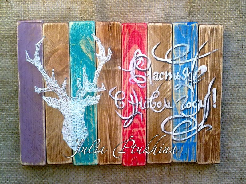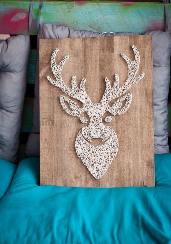 Модные картины из гвоздиков и ниток изготавливаются без особого труда. При этом оригинальный подарок можно вручить и подруге, и любимым родителями. Для работы обычно используется лист фанеры, ДСП или обрезок доски. Начинающим рукодельницам рекомендуется попробовать работать с небольшим и простым силуэтом. Постепенно повышая мастерство, можно переходить к многоцветным изображениям и картинкам со сложными формами. Сделать оригинальную и простую картину в технике стринг арт можно по следующему мастер-классу: