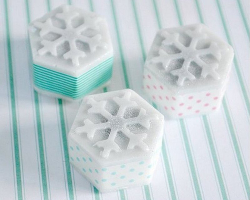 Изготовление ароматного мыла не требует особых умений и позволяет сделать очень прикольный и полезный презент. Подарить мыло ручной работы можно и любимому мужчине, и другу, и коллеге. Для простоты создания такого сувенира рекомендуется изначально приобрести фактурную силиконовую форму (к примеру, в виде снежинки, елки). Изготавливается мыло по такой схеме:
