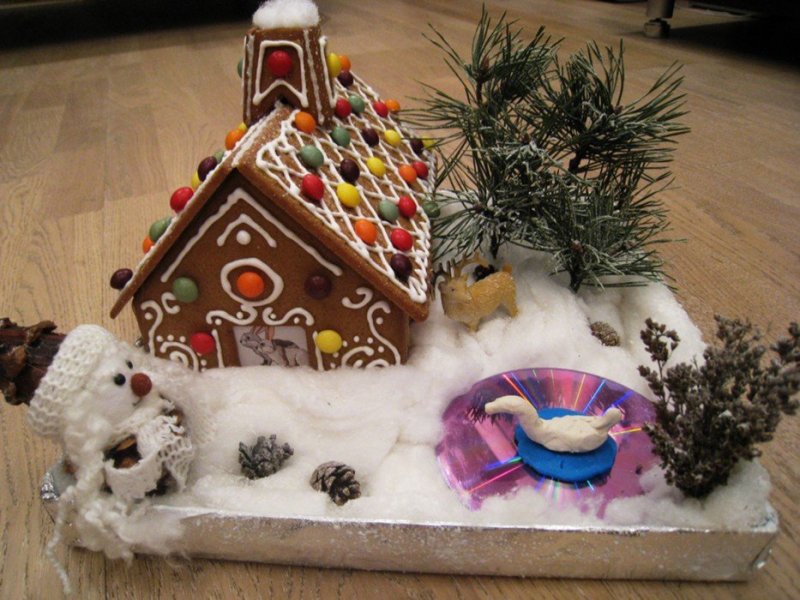 По аналогичной схеме можно испечь «детали» пряничного домика, а затем собрать их в объемную фигуру, склеивая между собой карамельной или белковой глазурью.