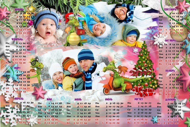Календарь, каждый месяц которого украшен новой фотографией, поможет одариваемому всегда помнить о поддержке и любви своей семьи, друзей.