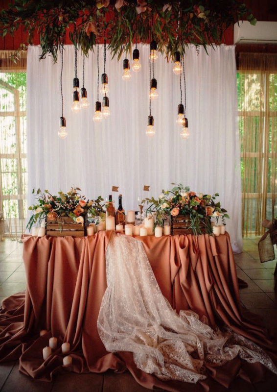 Совет! При оформлении помещения не стоит опасаться экспериментов, ведь креативные идеи – это не просто уникальный праздник, а проявление творческих способностей. Эмоции от такой свадьбы, несомненно, станут более яркими и запоминающимися.