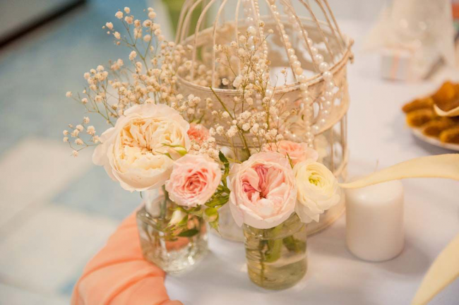 Важно! Цветы на столах – обязательное украшение любой свадьбы. Не стоит забывать о таком важном нюансе, как размер букетов. Высота цветов не должна превышать 25 см, чтобы гости чувствовали себя комфортно и украшения не мешали за столом.