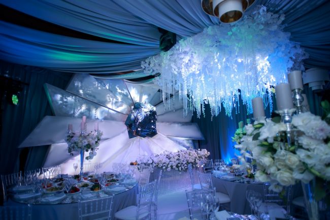 На заметку! Другим популярным трендом является многомерное пространство, многообразие вселенной, мир иллюзий. Основным элементом оформления такого стиля становятся освещение, мерцание и перламутр.