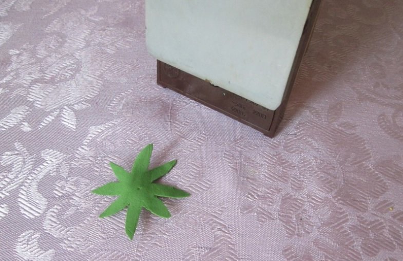 Если дырокол рвет края цветов, плохо проталкивает изделия, под фоамиран следует подложить лист бумаги. Это значительно повысит качество рубки.