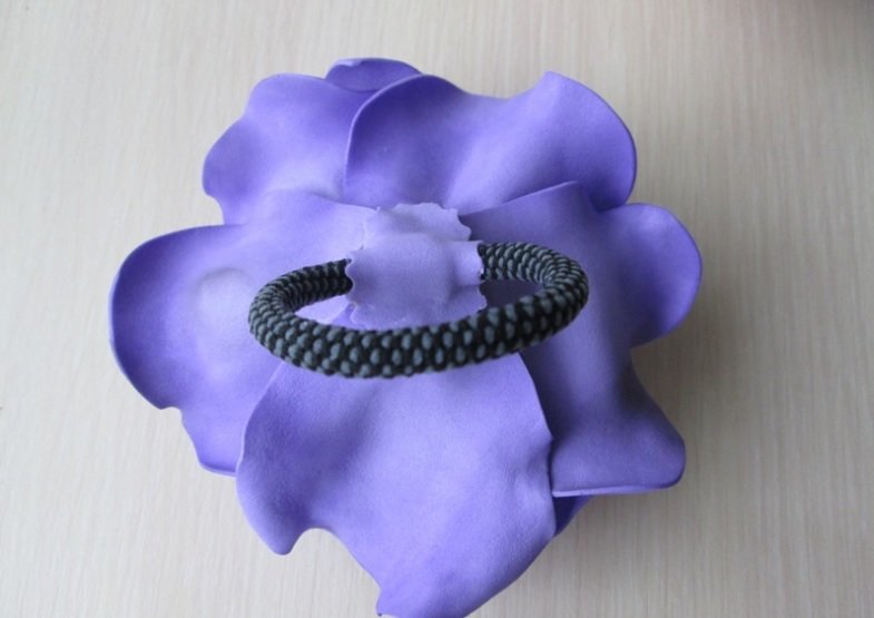 В качестве стебля можно использовать прочную проволоку. Нанизываем на нее увесистую бусину и скручиваем концы. Первыми крепятся самые большие – двойные лепестки, затем тройные и середина. Для полной картины создаем еще несколько цветов.